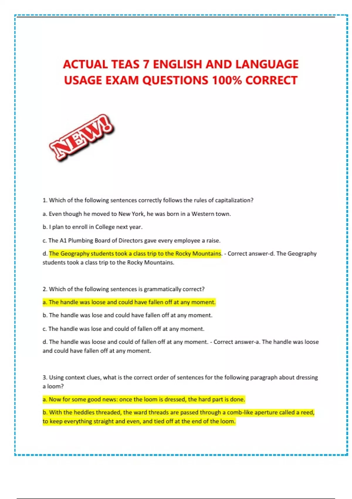- ACTUAL TEAS 7 ENGLISH AND LANGUAGE USAGE 2024