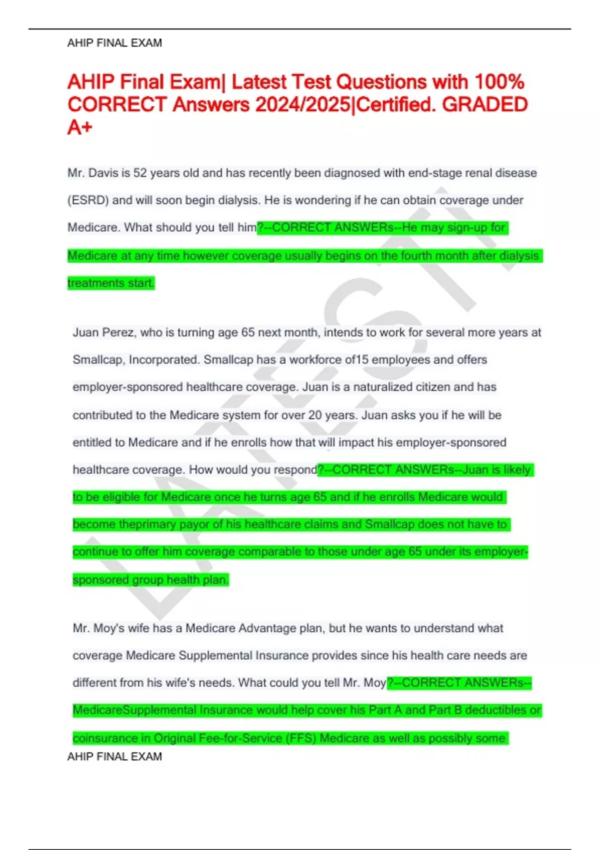 AHIP Final Exam| Latest Test Questions with 100% CORRECT Answers 2024/2025|Certified. GRADED A+