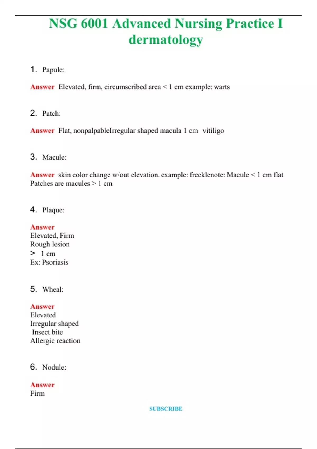 NSG 6001 Advanced Nursing Practice I dermatology Actual Exam 2024 Q & A (Graded A+ )