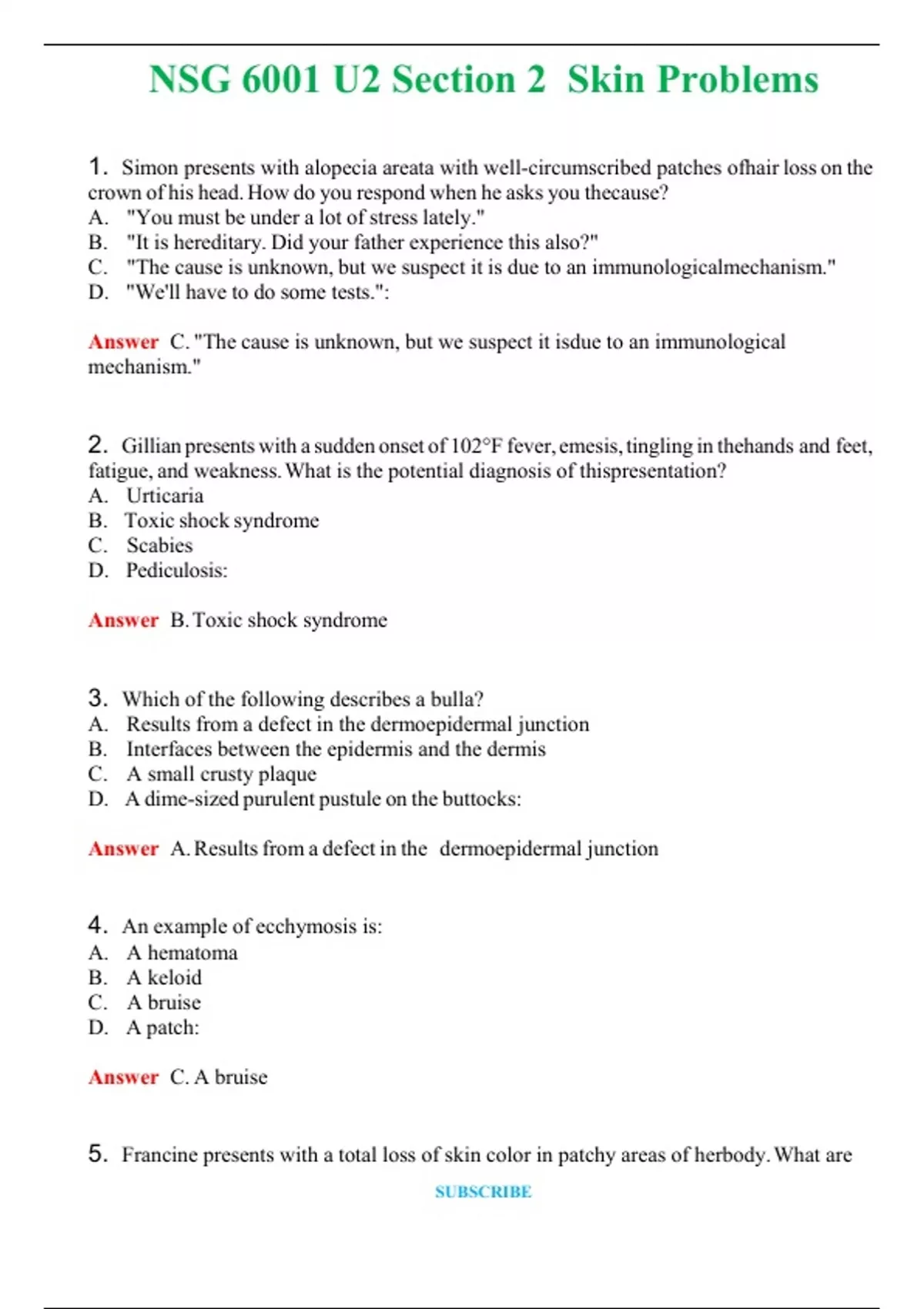 NSG 6001 U2 Section 2 Skin Problems Actual Exam 2024 Q & A (Graded A+ )