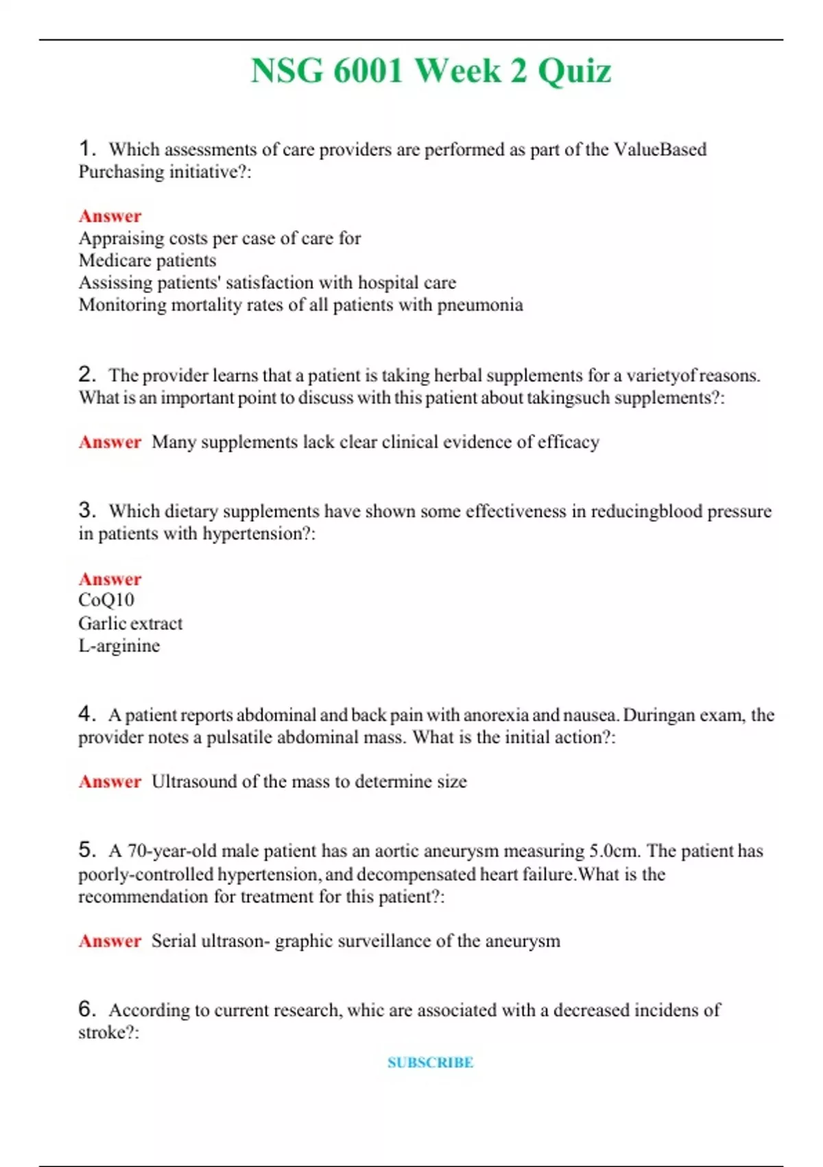 NSG 6001 Week 2 Quiz Actual Exam 2024 Q & A (Graded A+ )