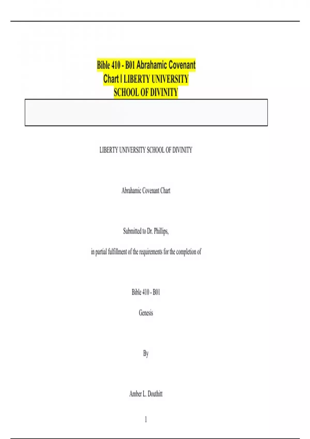 Bible 410 - B01 Abrahamic Covenant Chart I LIBERTY UNIVERSITY SCHOOL OF DIVINITY