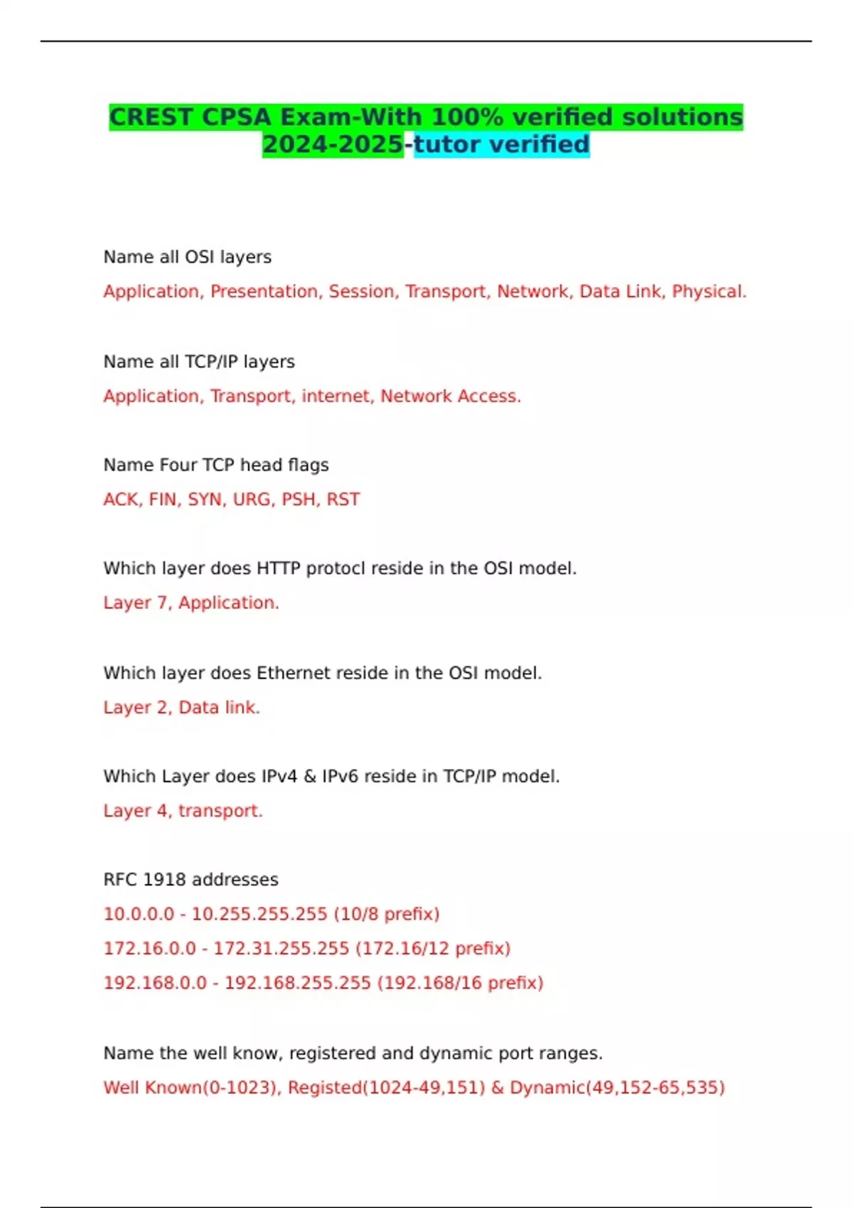 CREST CPSA Exam-With 100% verified solutions -tutor verified