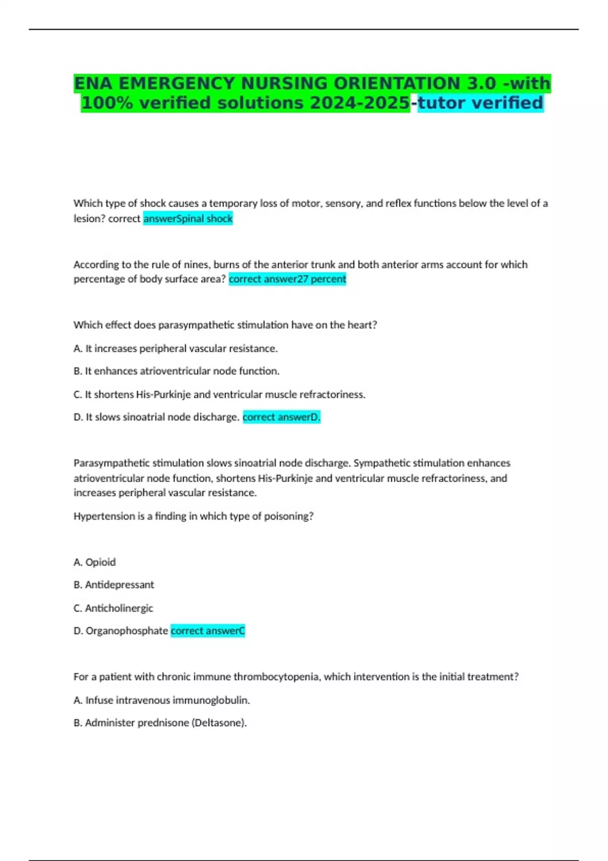 ENA EMERGENCY NURSING ORIENTATION 3.0 -with 100% verified solutions -tutor verified