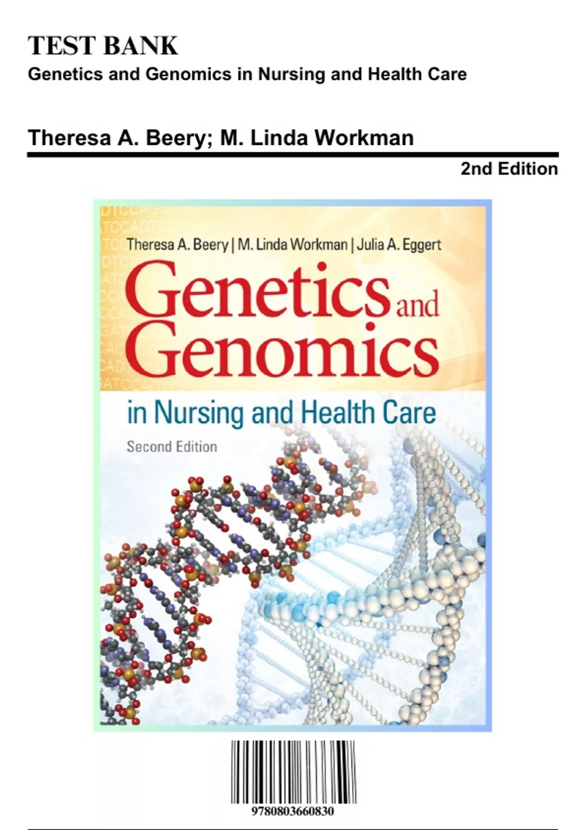 Test Bank: Genetics and Genomics in Nursing and Health Care 2nd Edition by Beery - Ch. 1-20, 9780803660830, with Rationales