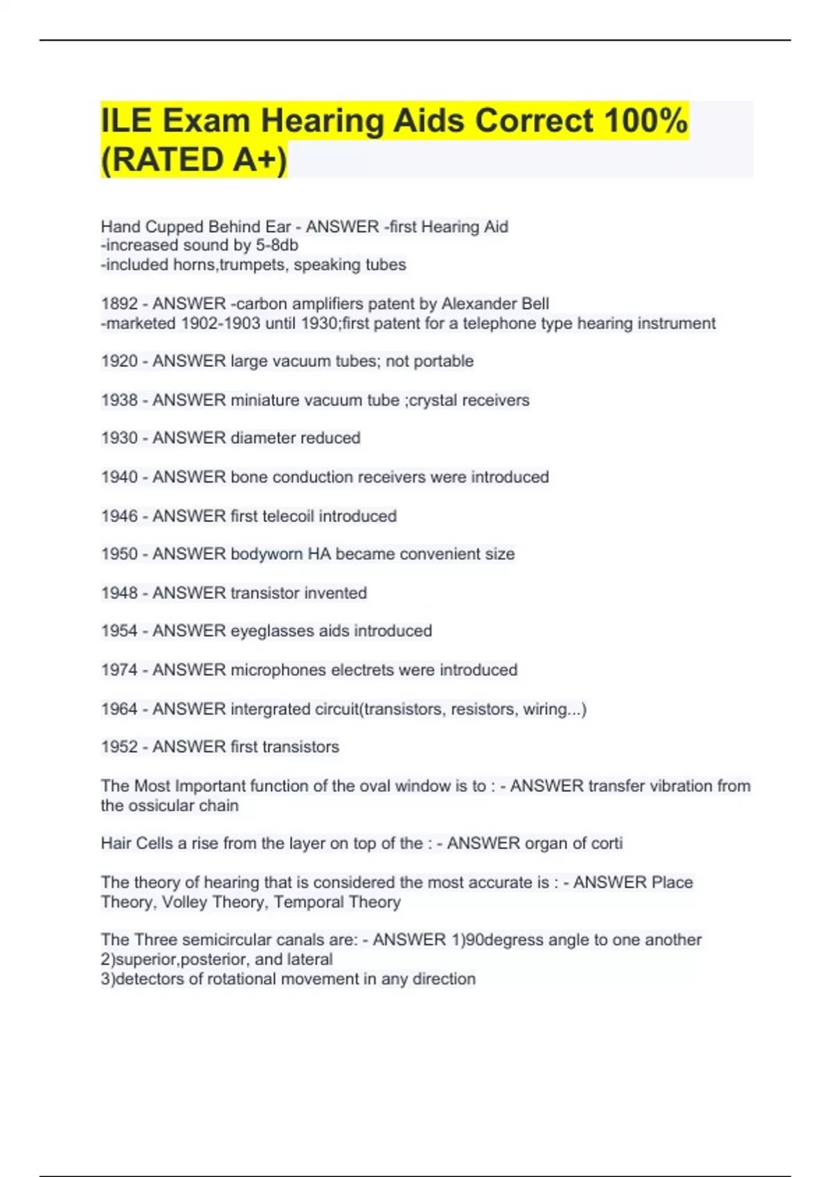 ILE Exam Hearing Aids Correct 100%(RATED A+)