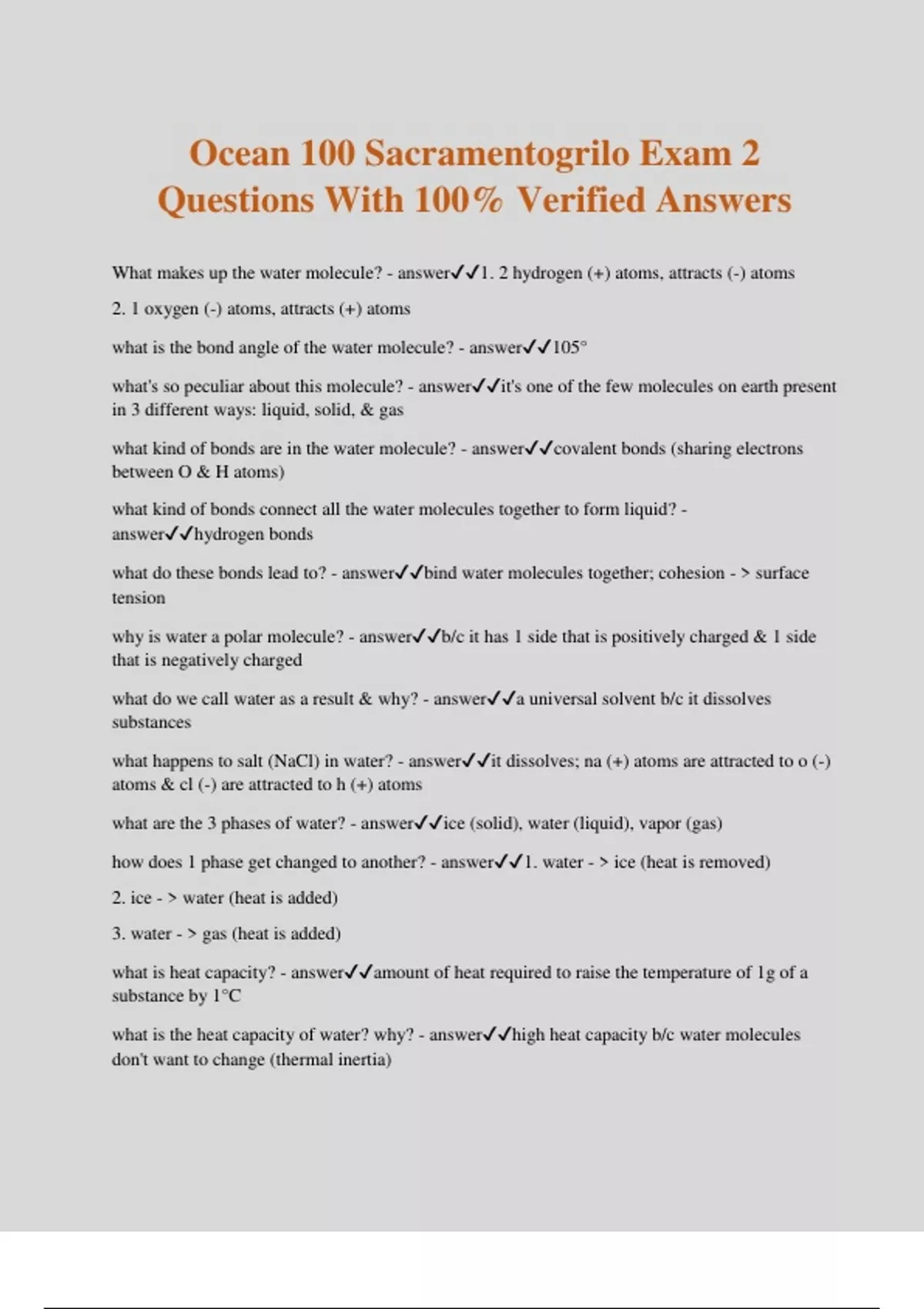 Ocean 100 Sacramentogrilo Exam 2 Questions With 100% Verified Answers