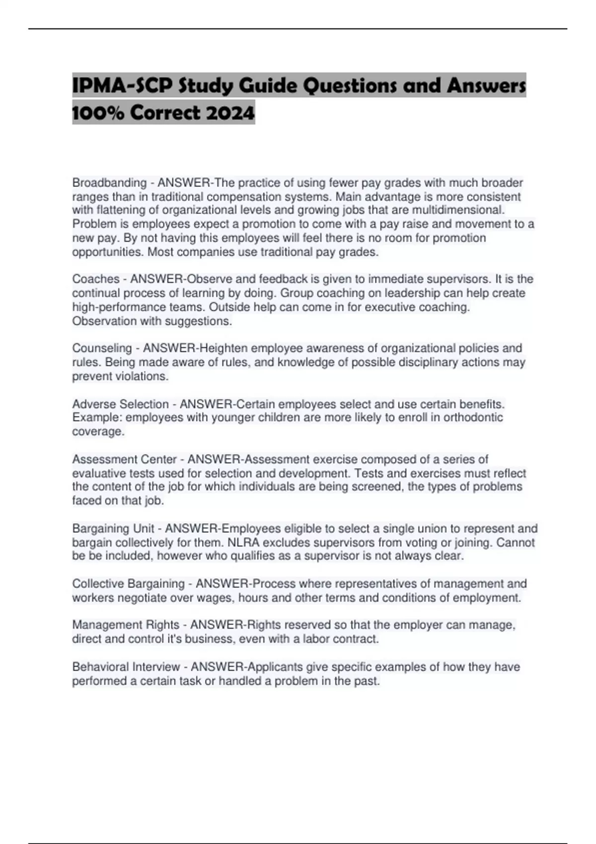 IPMA-SCP Studuide Questons And Anwers 100% C