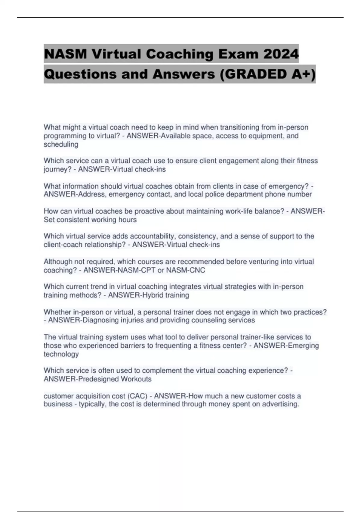 - NASM Virtual Coaching Exa 2024 Qestions and Ans