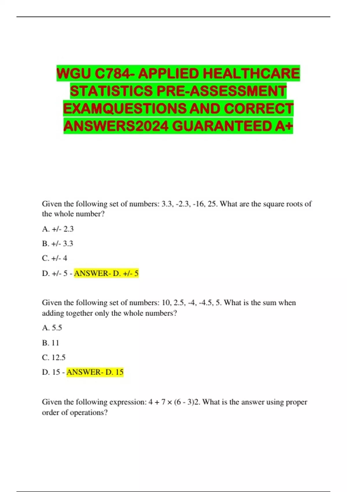 WGU C784- APPLIED HEALTHCARE STATISTICS PRE-ASSESSMENT EXAM QUESTIONS AND CORRECT ANSWERS 2024 GUARANTEED A+