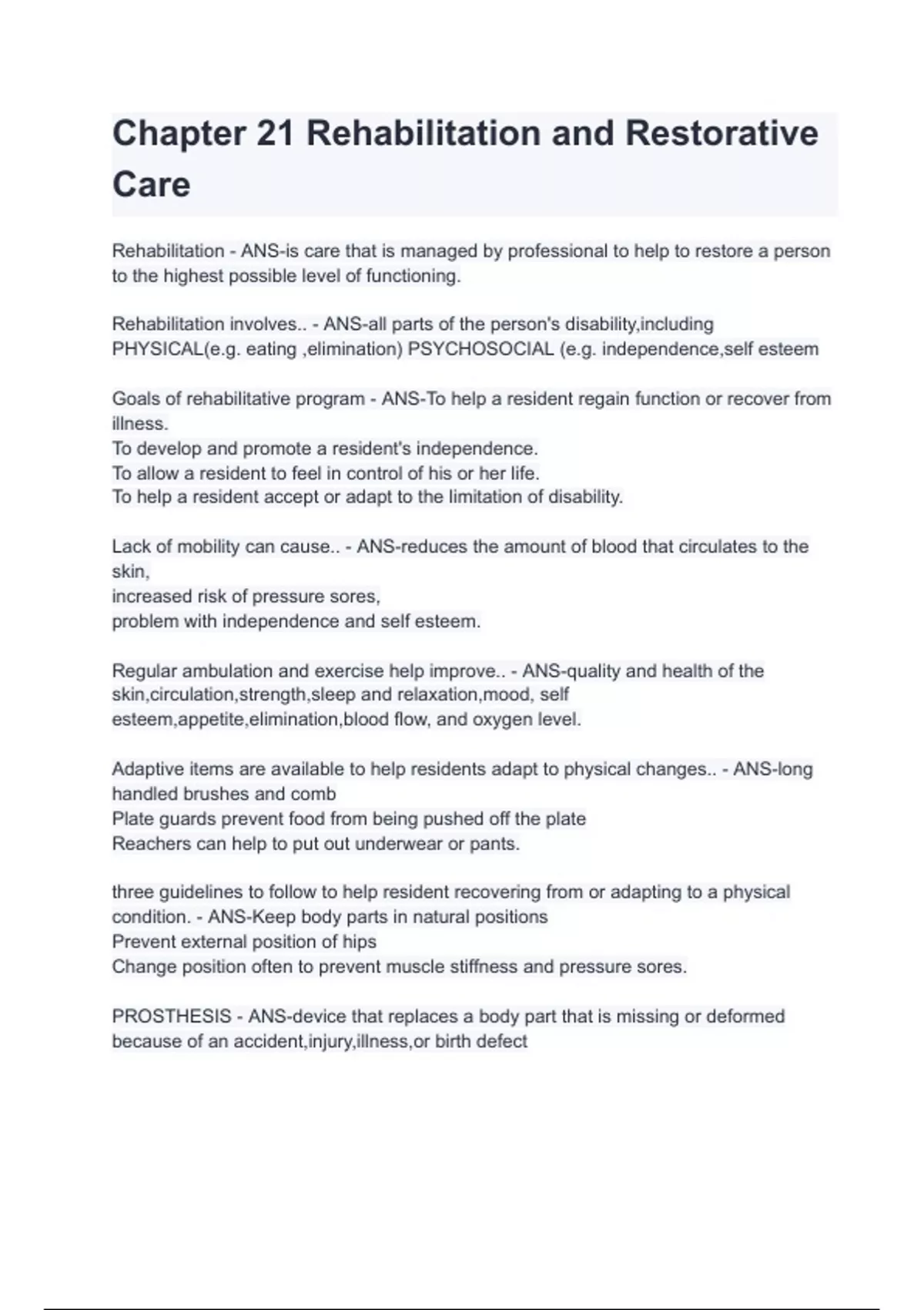 chapter 21 rehabilitation and restorative care