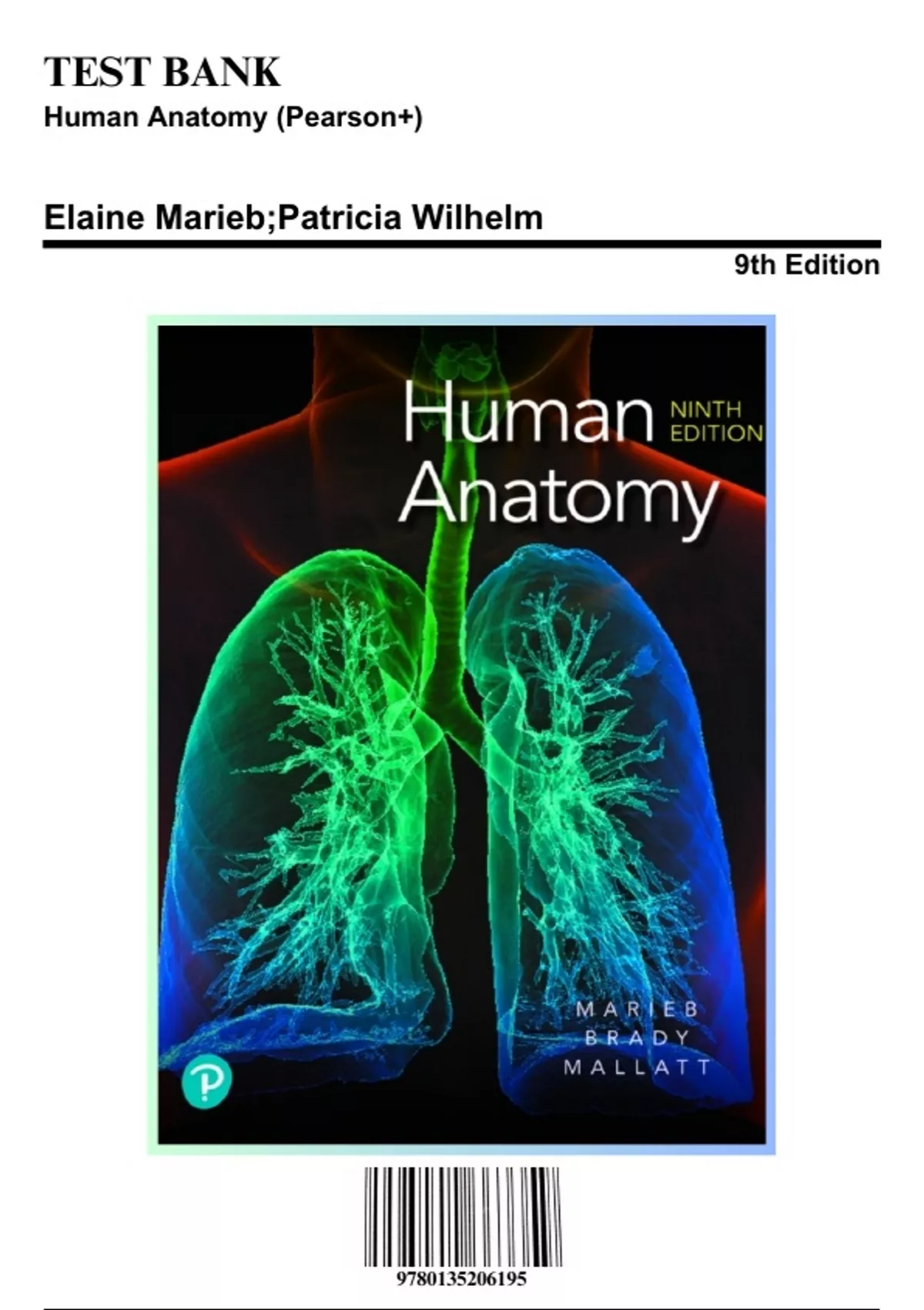 Test Bank: Human Anatomy (Pearson+) 9th Edition by Brady - Ch. 1-29, 9780135206195, with Rationales