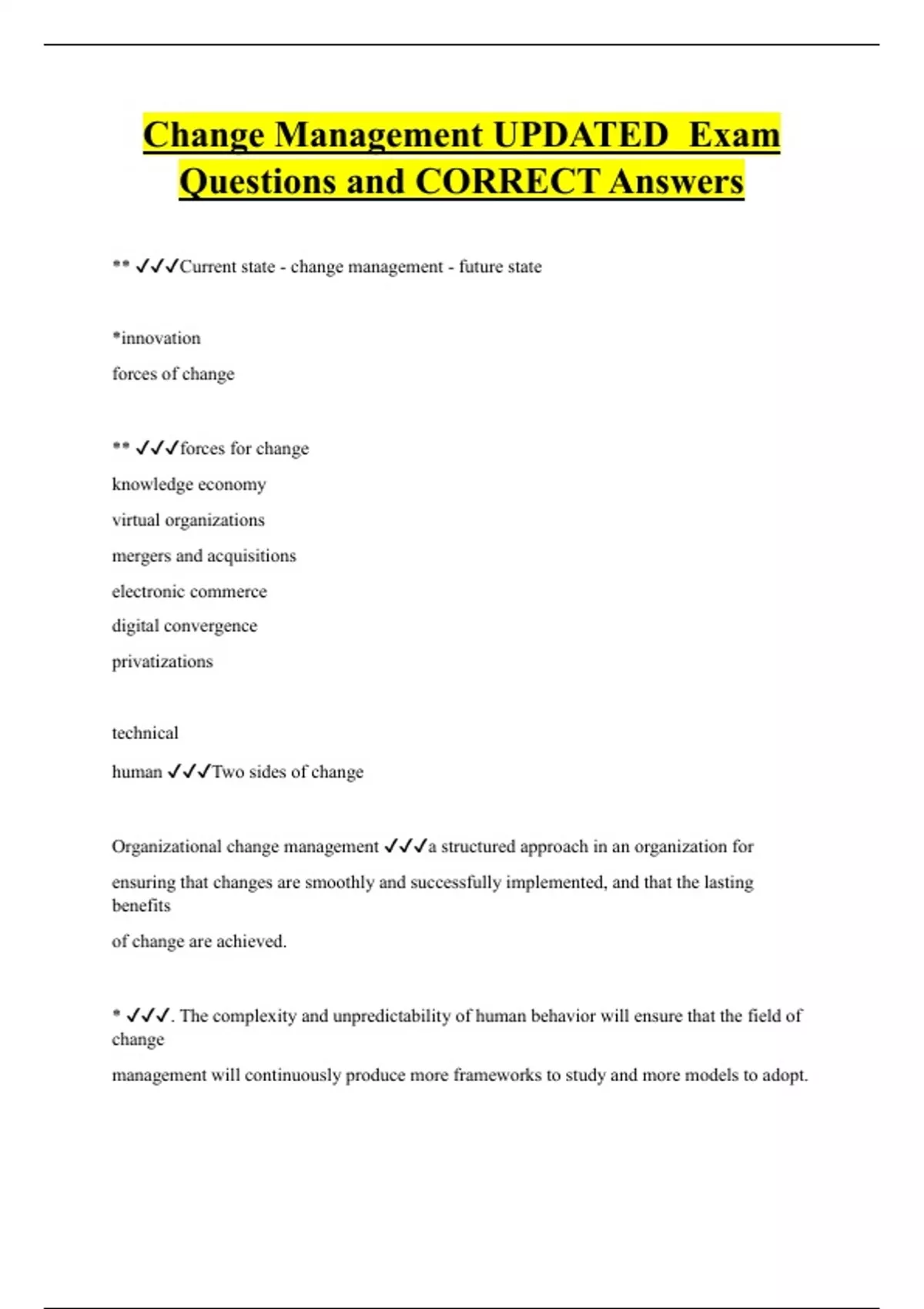 Change Management UPDATED Exam Questions and CORRECT Answers