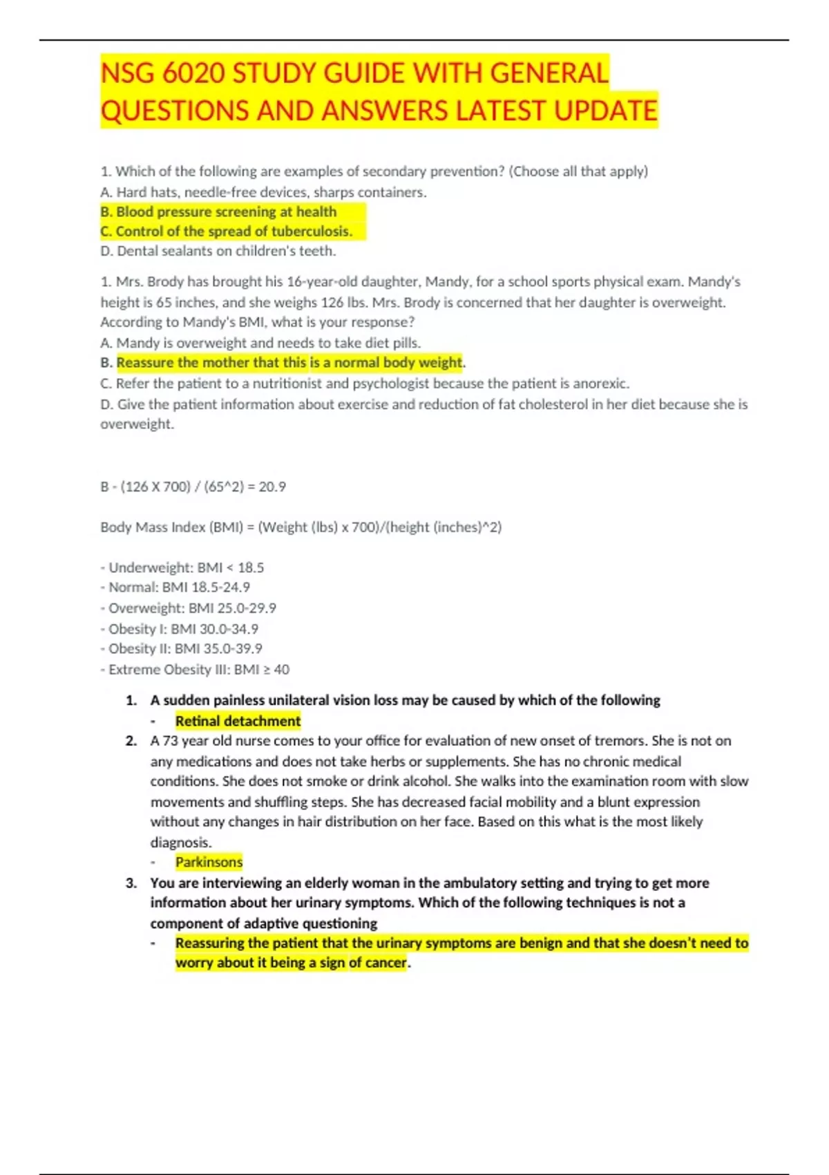,NSG 6020 STUDY GUIDE WITH GENERAL