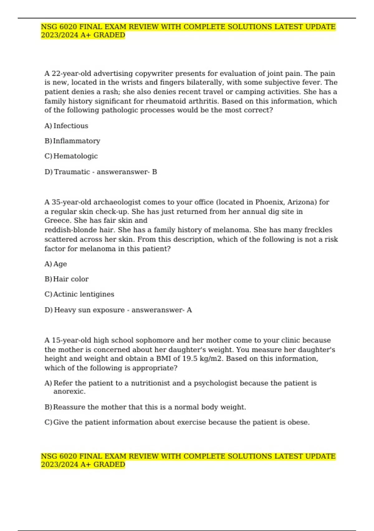 NSG 6020 FINAL EXAM REVIEW WITH COMPLETE SOLUTIONS LATEST UPDATE 2023/2024 A+ GRADED