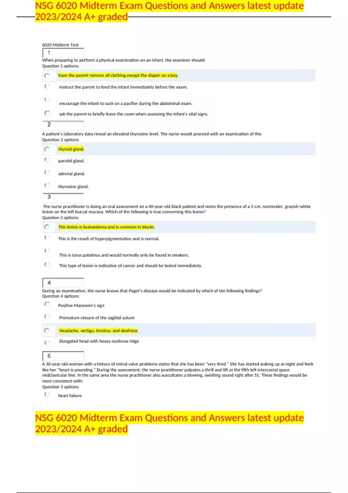 NSG 6020 Midterm Exam Questions and Answers latest update 2023/2024 A+ graded