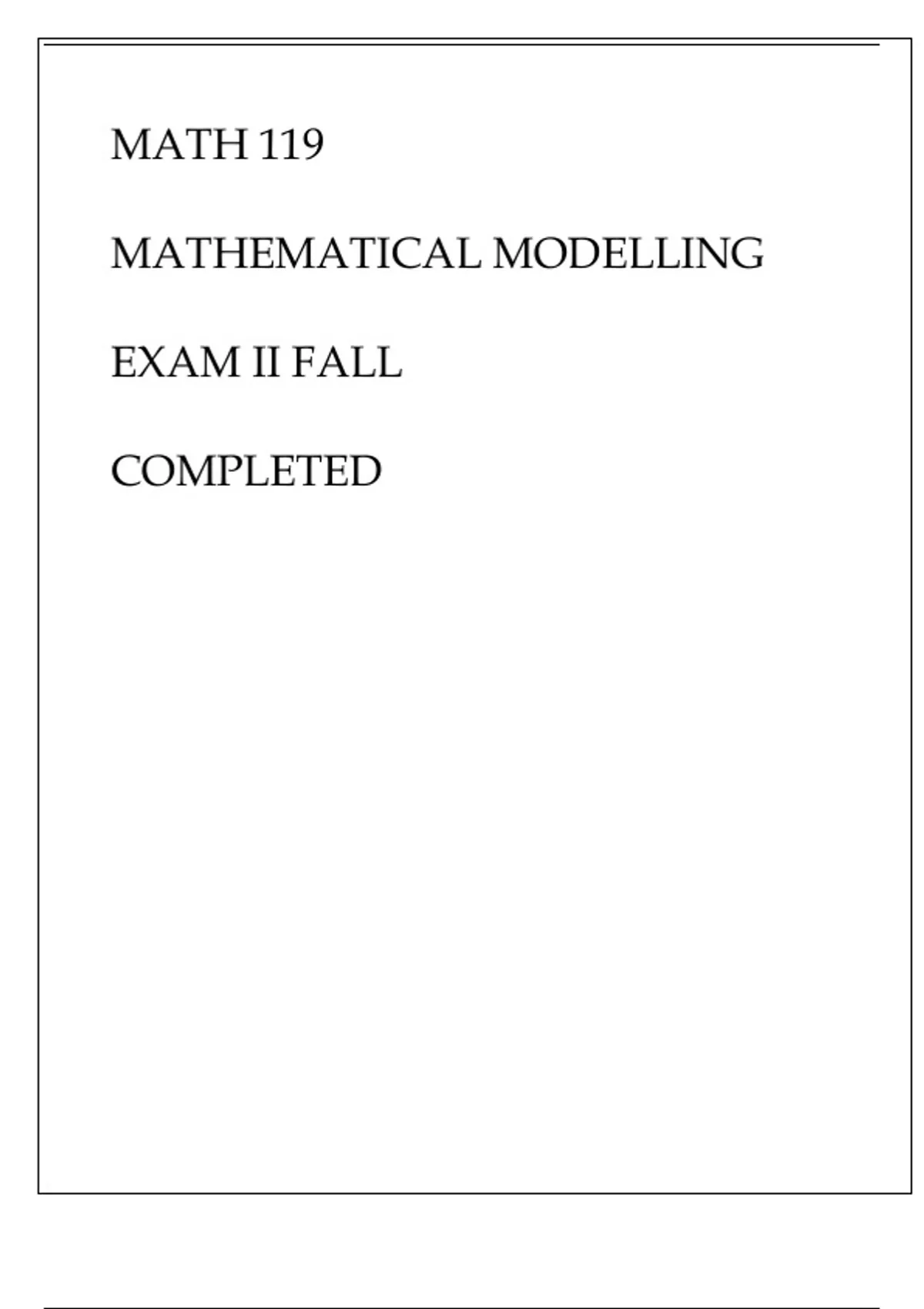 MATH 119 MATHEMATICAL MODELLING EXAM II FALL COMPLETEDMATH 119 MATHEMATICAL MODELLING EXAM II FALL COMPLETEDMATH 119 MATHEMATICAL MODELLING EXAM II FALL COMPLETED