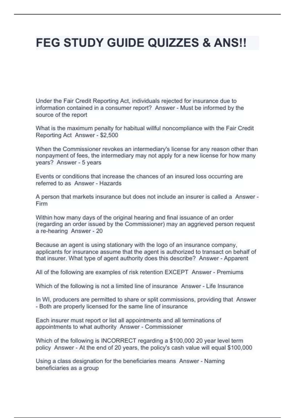 FEG STUDY GUIDE QUIZZES & ANS!!