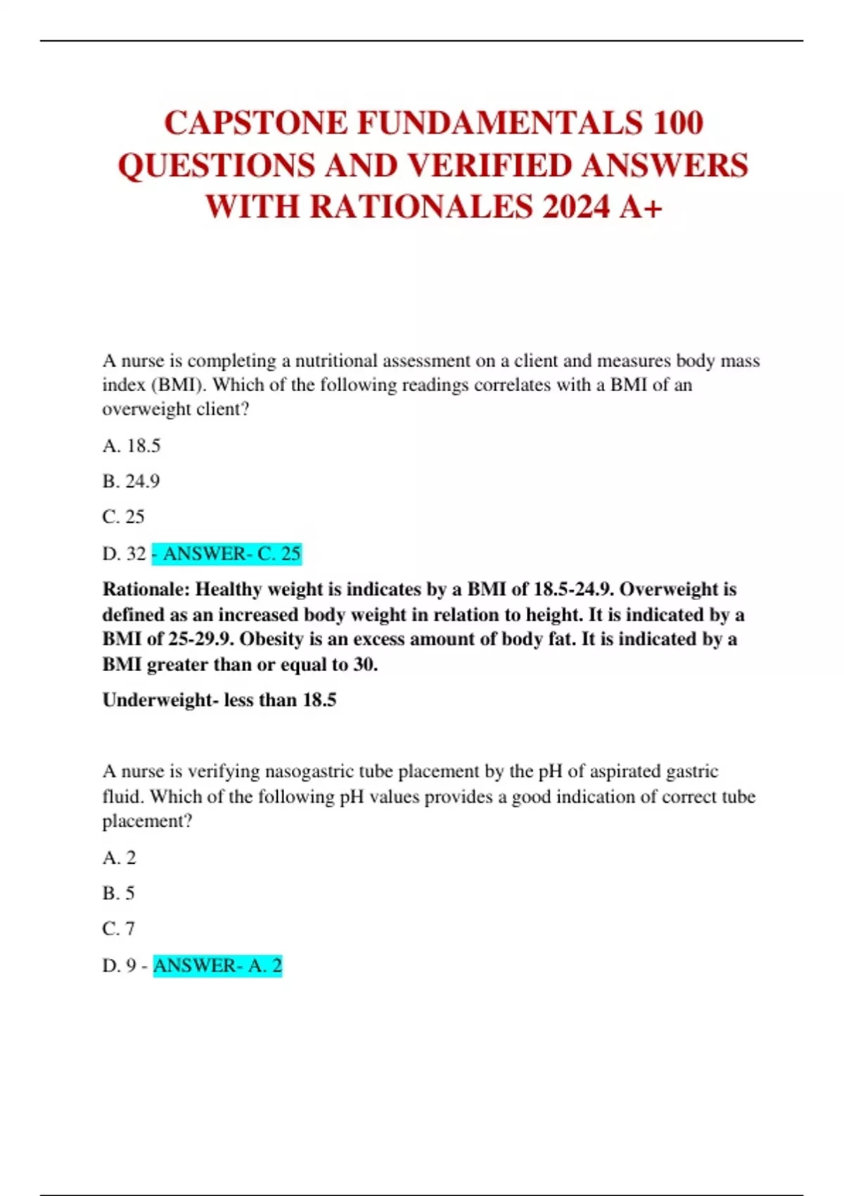 CAPSTONE FUNDAMENTALS 100 QUESTIONS AND VERIFIED ANSWERS WITH RATIONALES 2024 A+CAPSTONE FUNDAMENTALS 100 QUESTIONS AND VERIFIED ANSWERS WITH RATIONALES 2024 A+CAPSTONE FUNDAMENTALS 100 QUESTIONS AND VERIFIED ANSWERS WITH RATIONALES 2024 A+CAPSTONE FUNDAMENTALS 100 QUESTIONS AND VERIFIED ANSWERS WITH RATIONALES 2024 A+