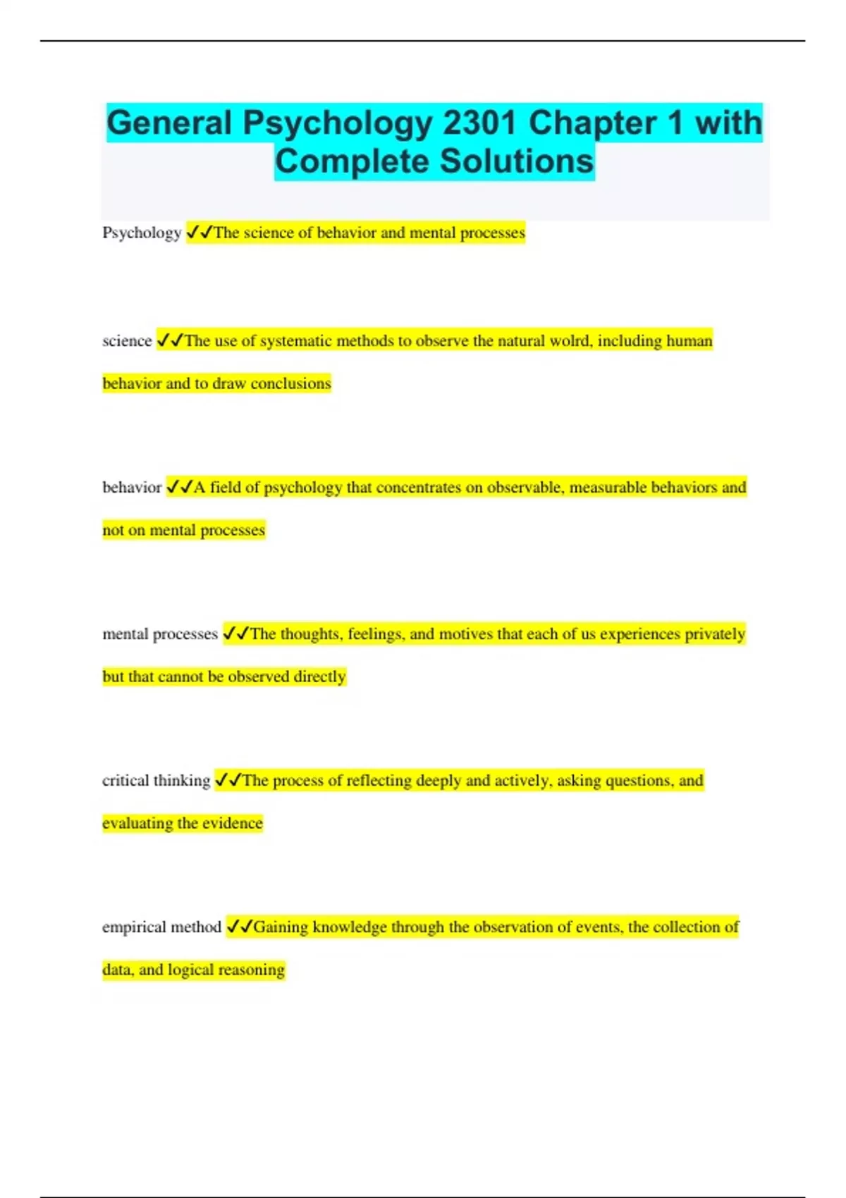 General Psychology 2301 Chapter 1 with Complete Solutions