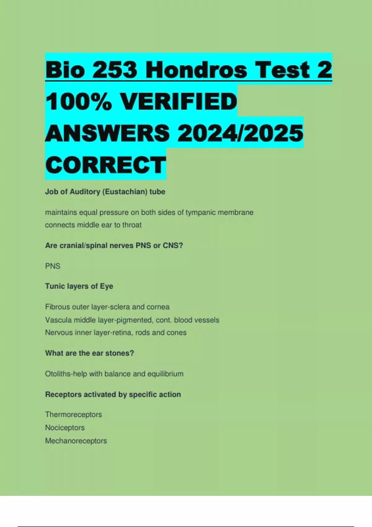Bio 253 Hondros Test 2 100% VERIFIED ANSWERS 2024/2025 CORRECT