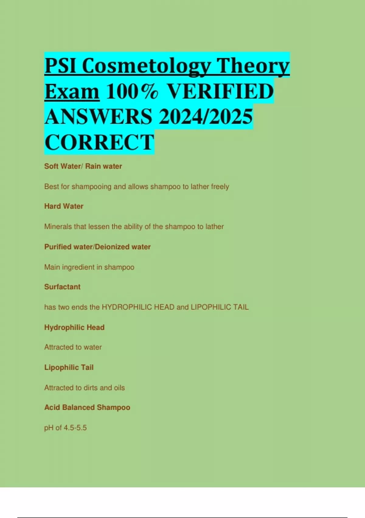 PSI Cosmetology Theory Exam 100% VERIFIED ANSWERS 2024/2025 CORRECT