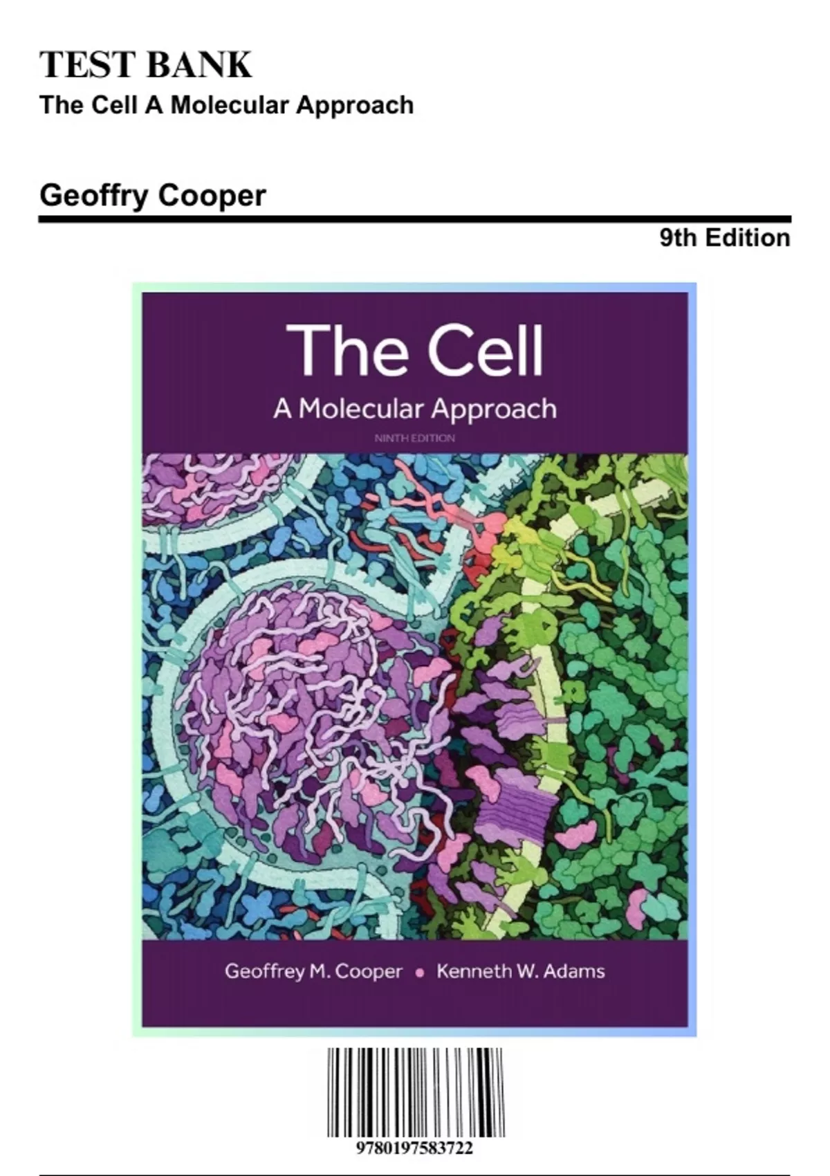 Test Bank for The Cell A Molecular Approach, 9th Edition by Geoffry Cooper, 9780197583722, Covering Chapters 1-19 | Includes Rationales