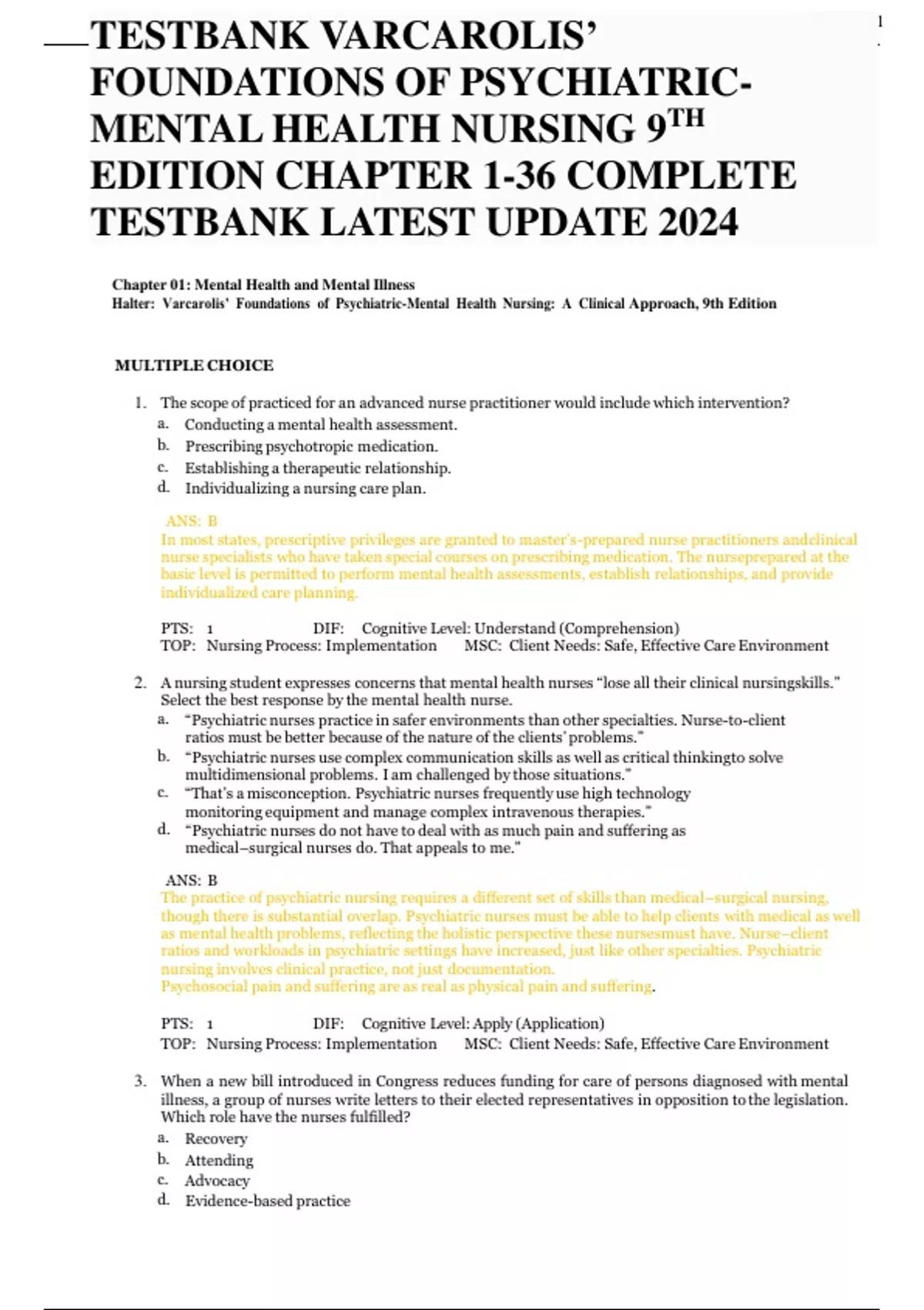 TESTBANK VARCAROLIS’ FOUNDATIONS OF HEALTH NURSING 9TH EDITION CHAPTER 1-36 COMPLETE TESTBANK LATEST UPDATE 2024