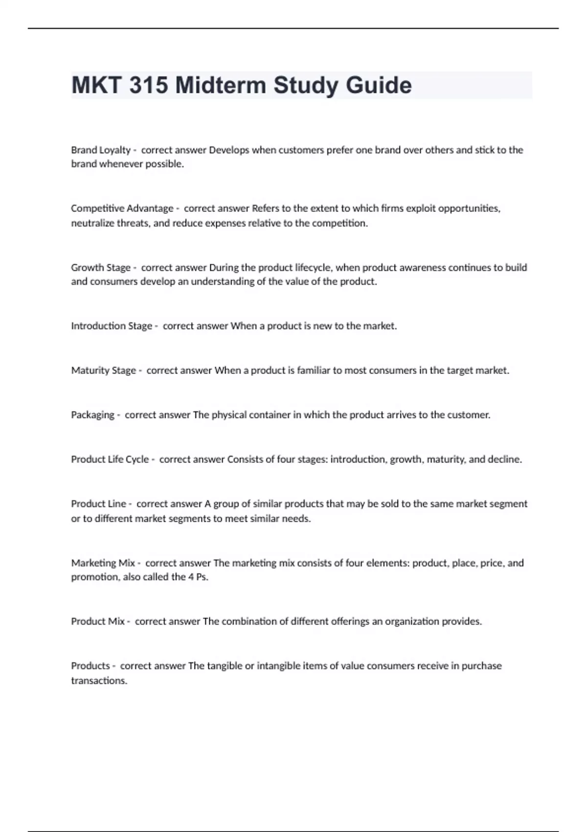 MKT 315 Midterm Study Guide questions and answers already solved 2024