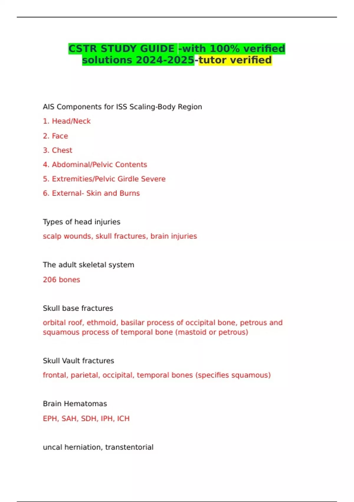 CSTR STUDY GUIDE -with 100% verified solutions -tutor verified