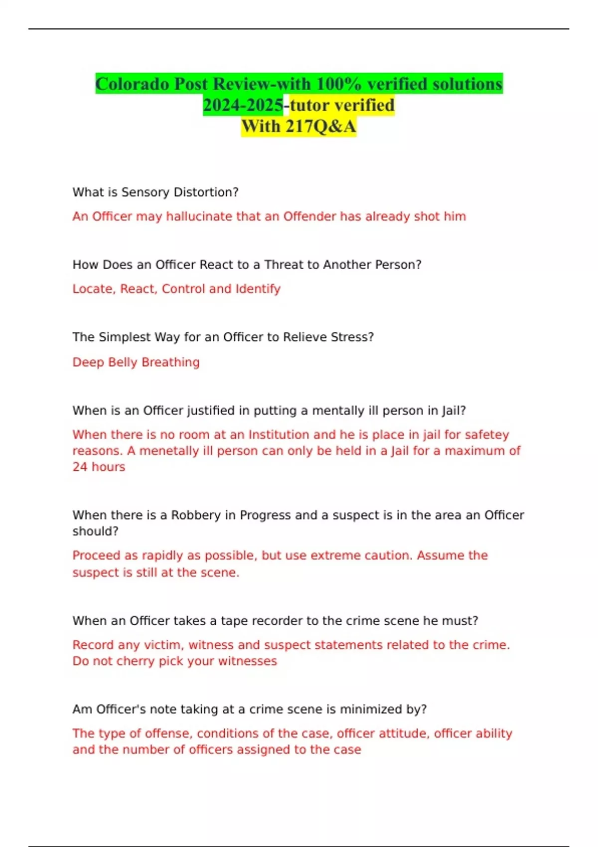 Colorado Post Review-with 100% verified solutions -tutor verified