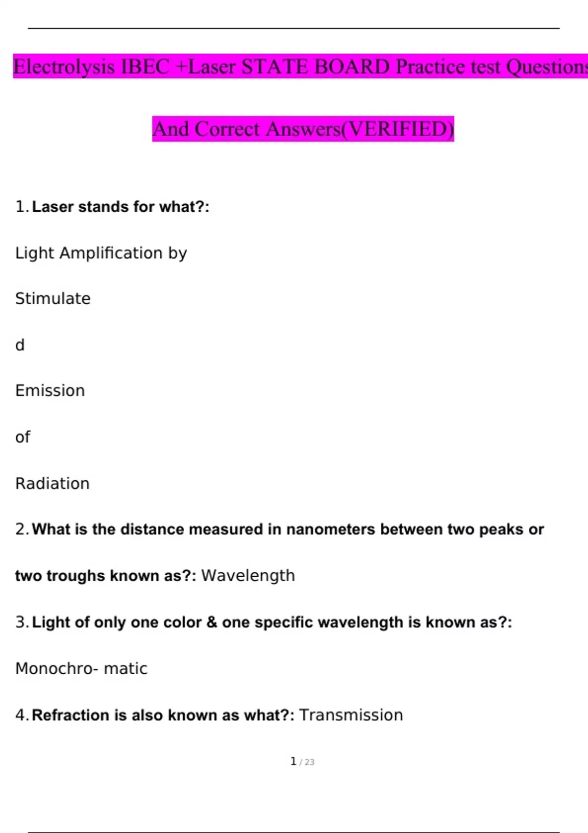 Electrolysis IBEC+Laser STATE BOARD Practice Test 2024 Exam Questions And Answers (Verified And Updated)