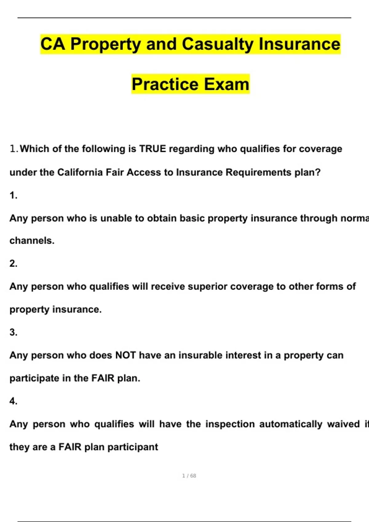 ca property and casualty insurance practice exam