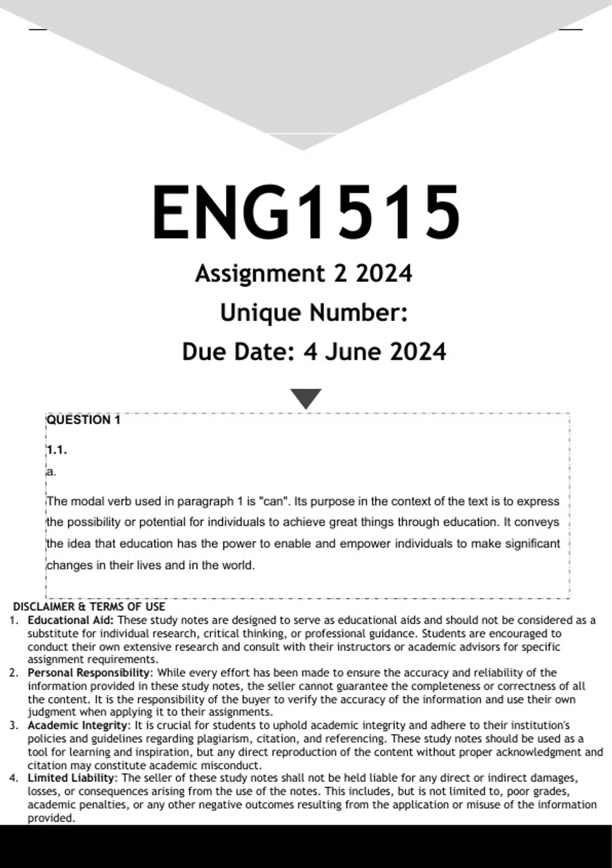 ENG1515 Assignment 2 (ANSWERS) 2024 - DISTINCTION GUARANTEED