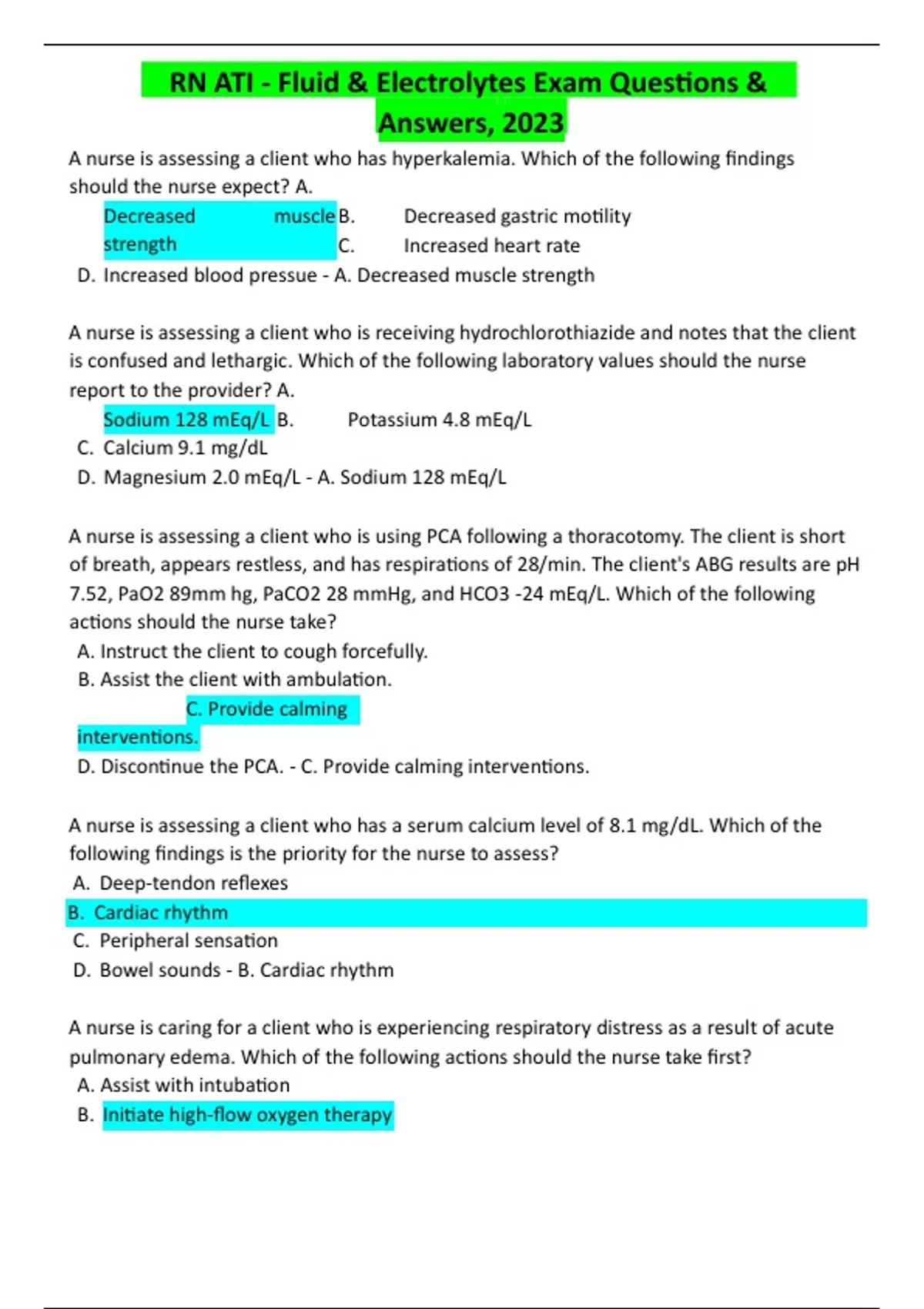 RN ATI - Fluid _ Electrolytes Exam Questions _ Answers, 2023.