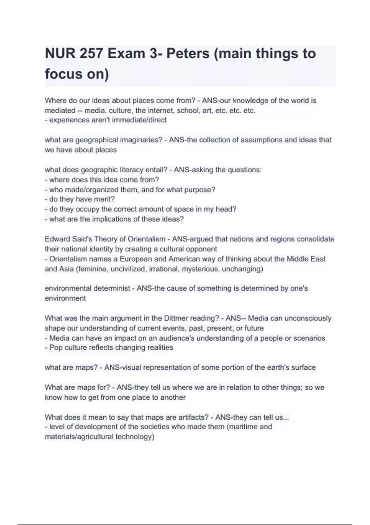 NUR 257 Exam 3- Peters (main things to focus on)