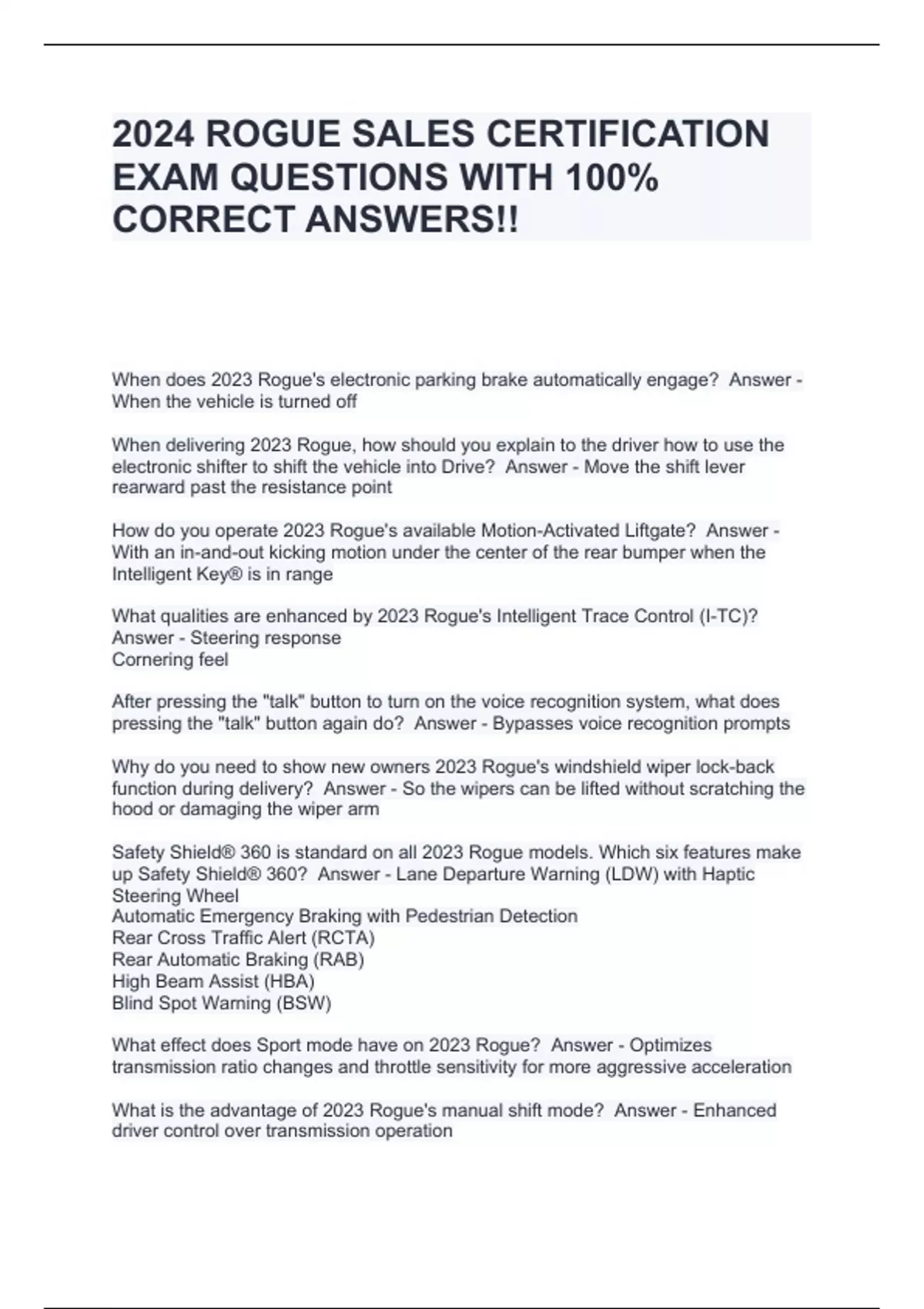 2024 ROGUE SALES CERTIFICATION EXAM QUESTIONS WITH 100% CORRECT ANSWERS!!