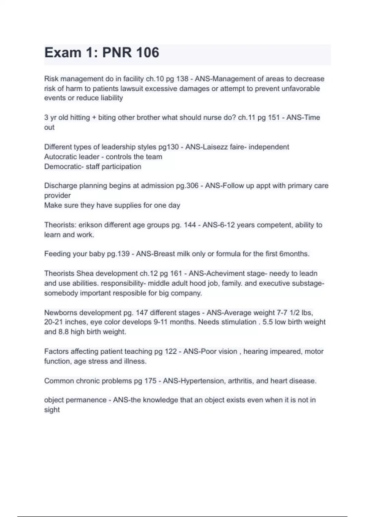 exam 1 pnr 106
