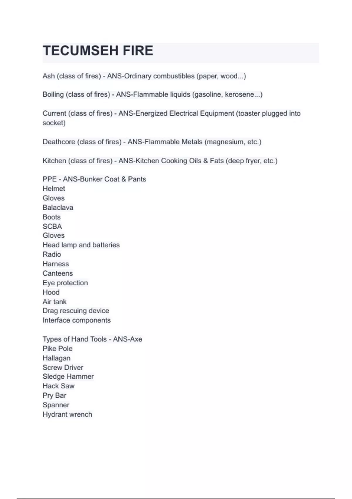 TECUMSEH FIRE