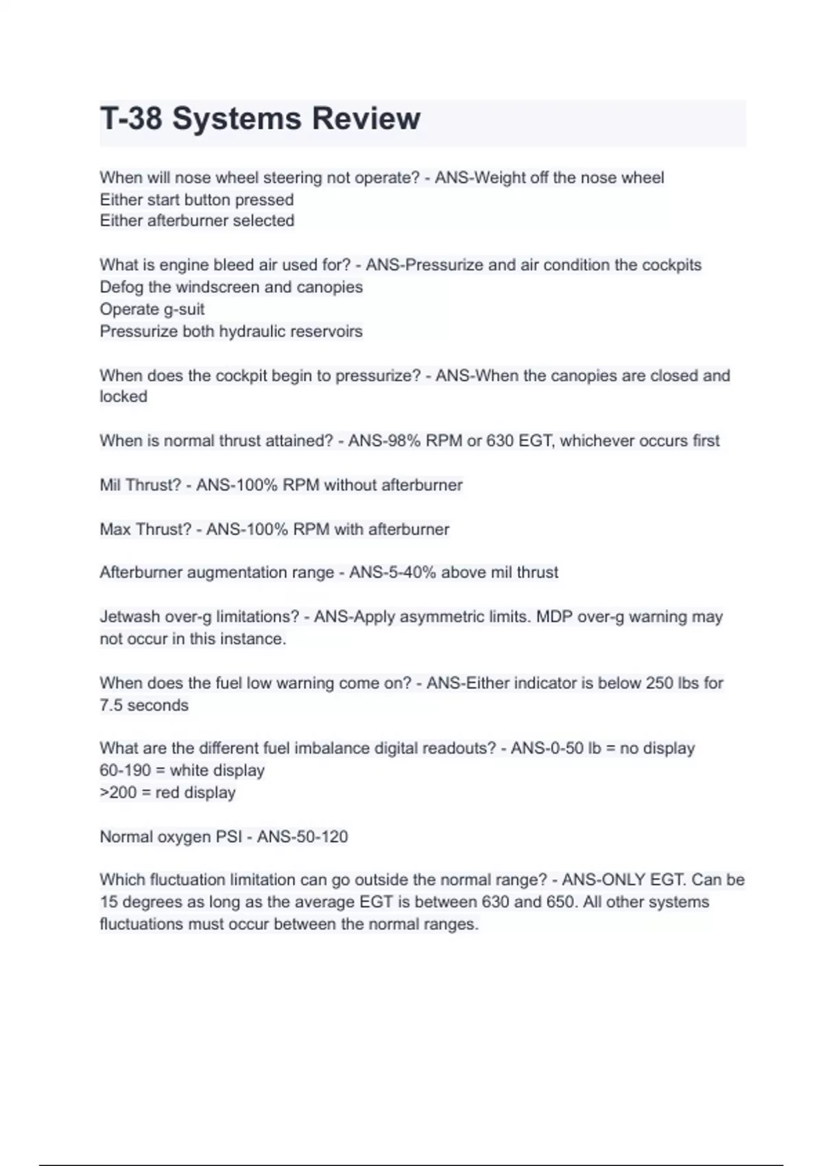 Exam of 16 pages for the course unit 5 at unit 5 (T-38 Systems Review)