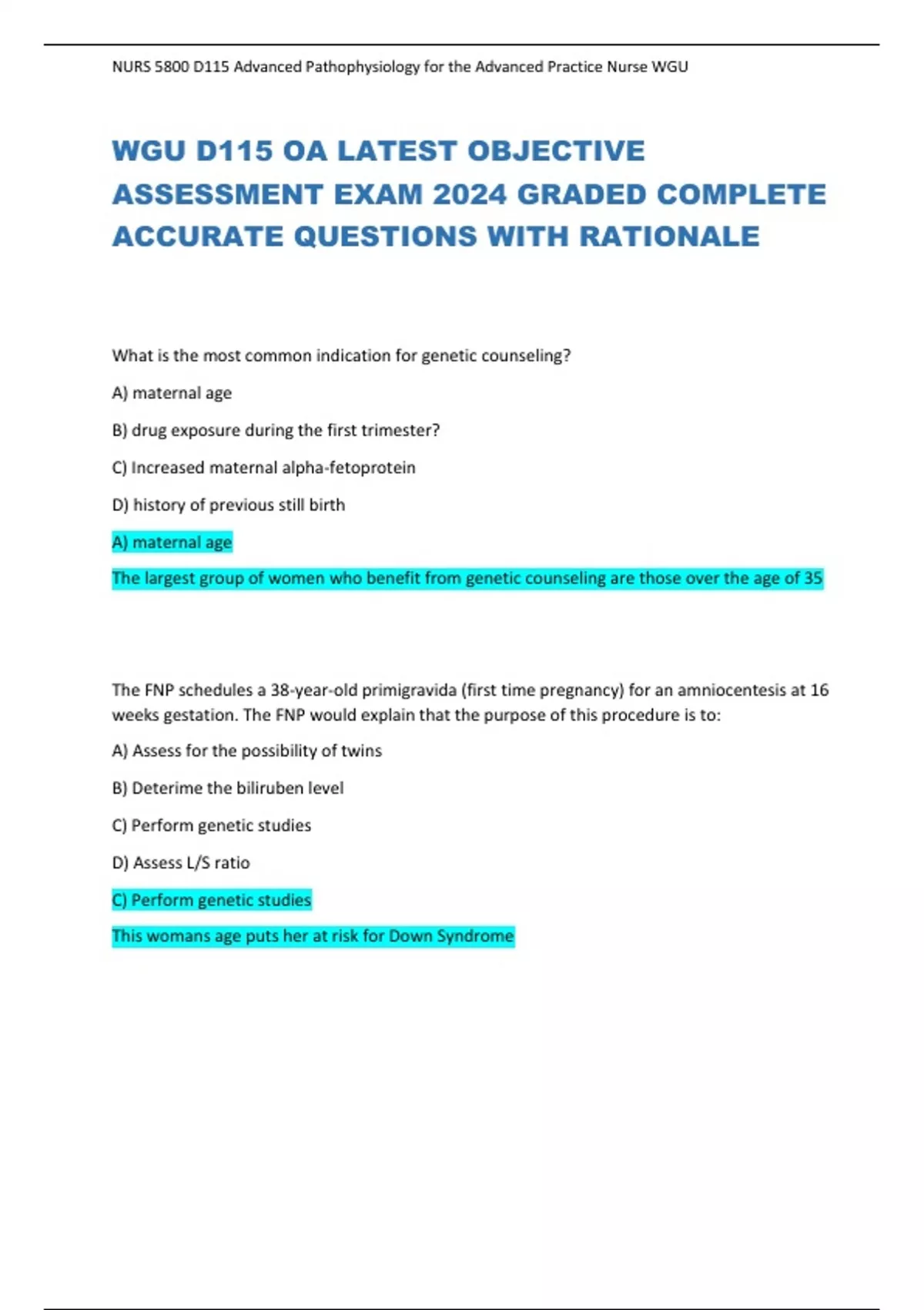 WGU D115 OA LATEST OBJECTIVE ASSESSMENT EXAM 2024 GRADED COMPLETE ACCURATE QUESTIONS WITH RATIONALE