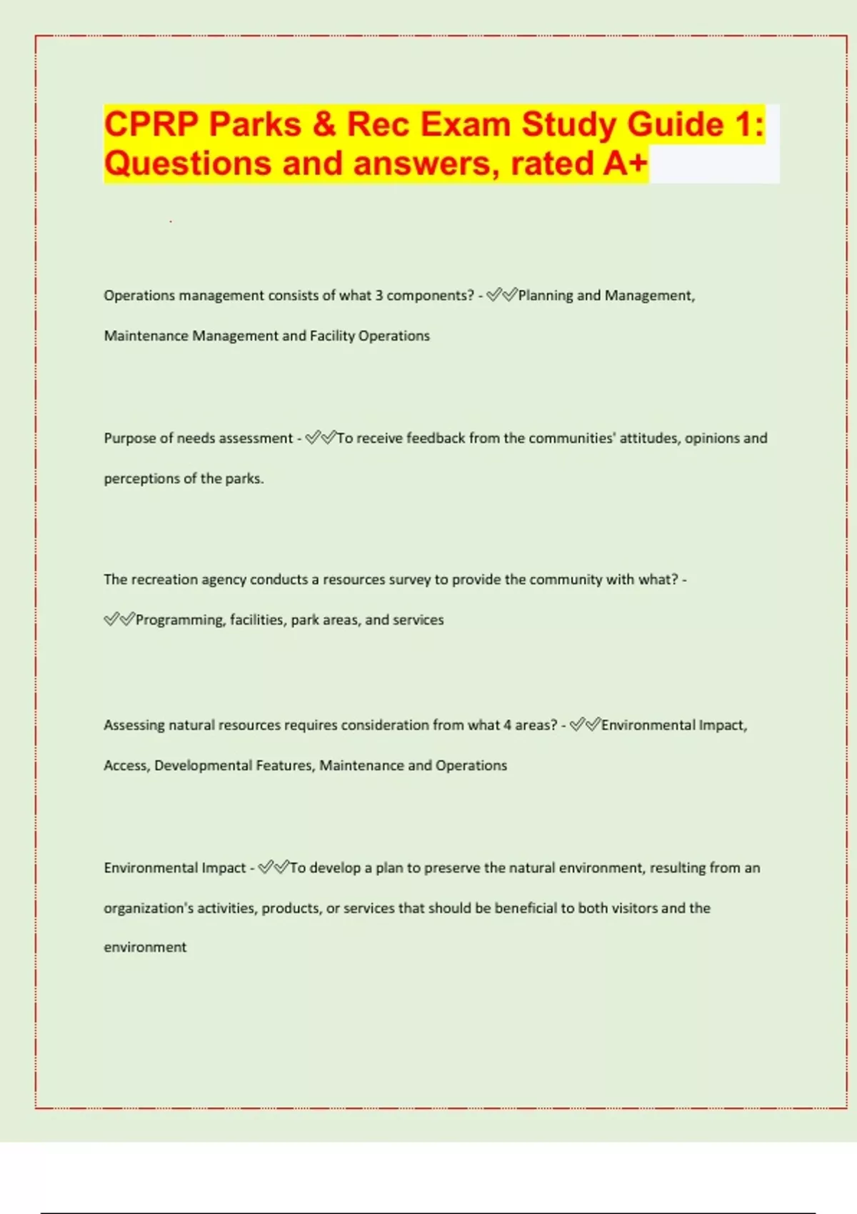 CPRP Parks & Rec Exam Study Guide 1: Questions and answers, rated A+