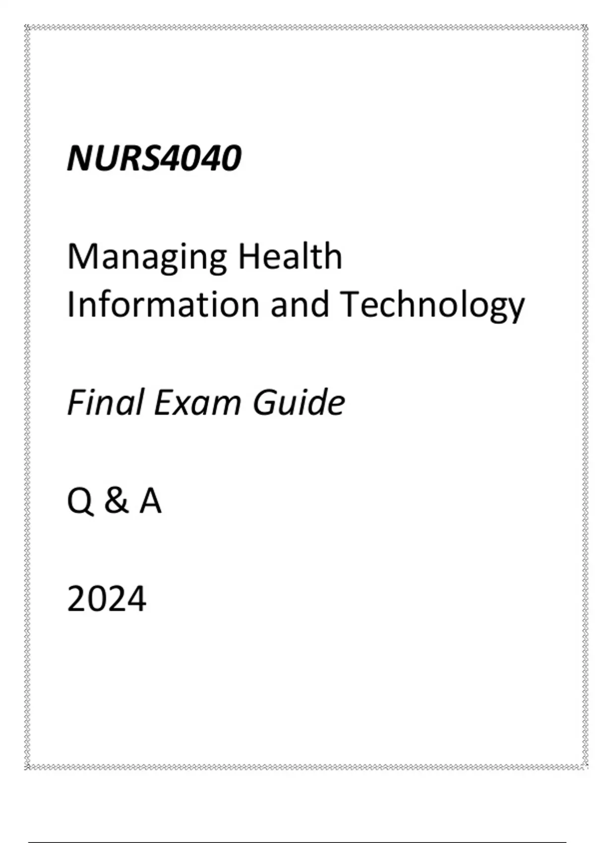 NURS4040 Managing Health Information & Technology Final Exam Guide Q & A 2024.NURS4040 Managing Health Information & Technology Final Exam Guide Q & A 2024.NURS4040 Managing Health Information & Technology Final Exam Guide Q & A 2024.