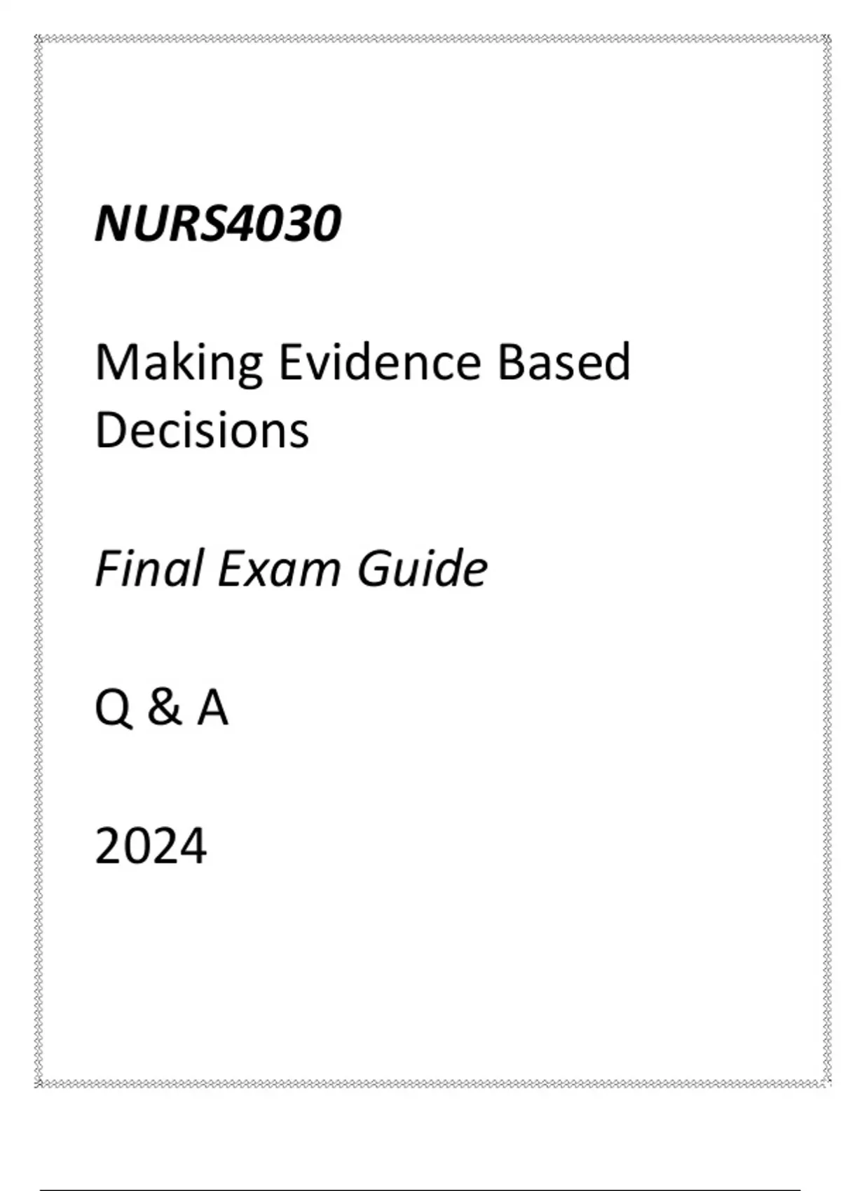 NURS4030 Making Evidence Based Decisions Final Exam Guide Q & A 2024NURS4030 Making Evidence Based Decisions Final Exam Guide Q & A 2024NURS4030 Making Evidence Based Decisions Final Exam Guide Q & A 2024