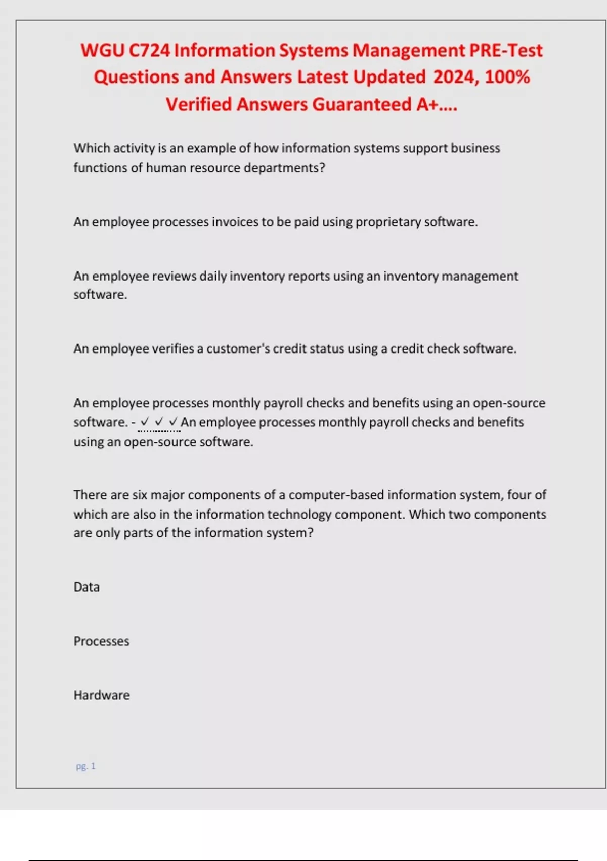 WGU C724 Information Systems Management PRE-Test Questions and Answers Latest Updated 2024, 100% Verified Answers Guaranteed A+