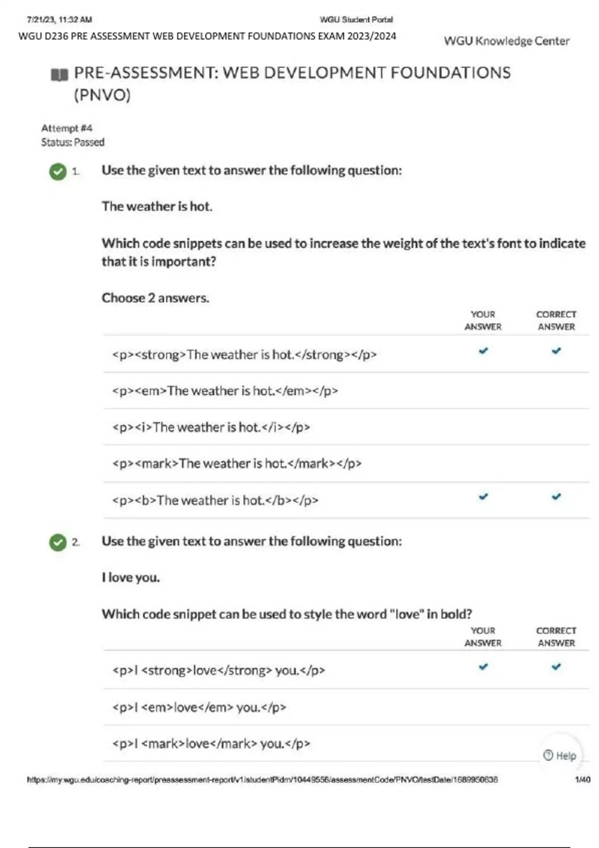 WGU D236 PRE ASSESSMENT WEB DEVELOPMENT FOUNDATIONS EXAM 2023/2024