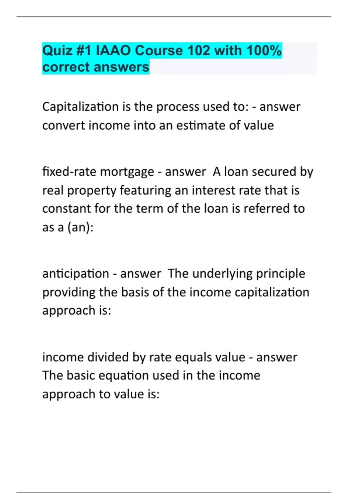 Quiz #1 IAAO Course 102 with 100% correct answers