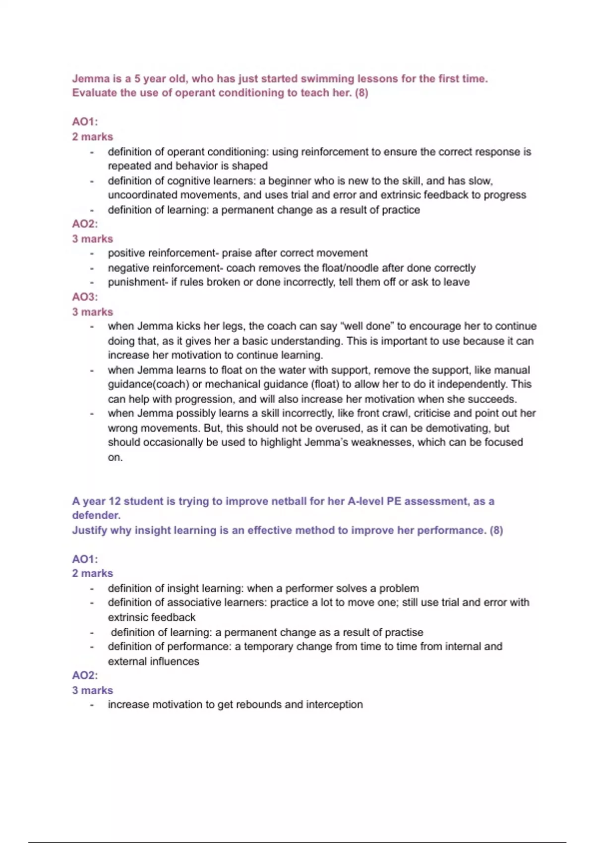 - when Jemma kicks her legs, the coach can say “well done” to encourage her to continue
