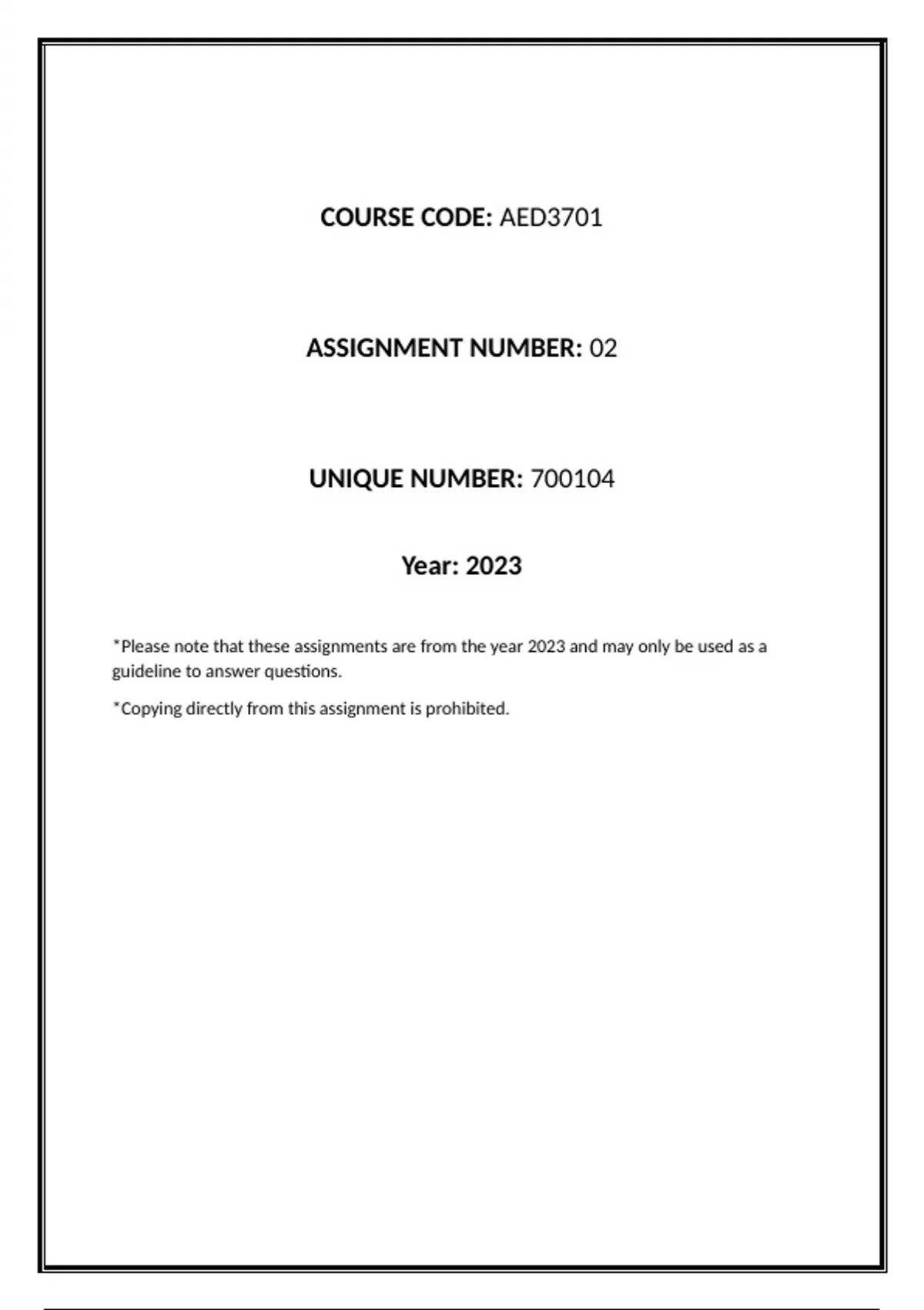 *Please note that these assignments are from the year 2023 and may only be used as a