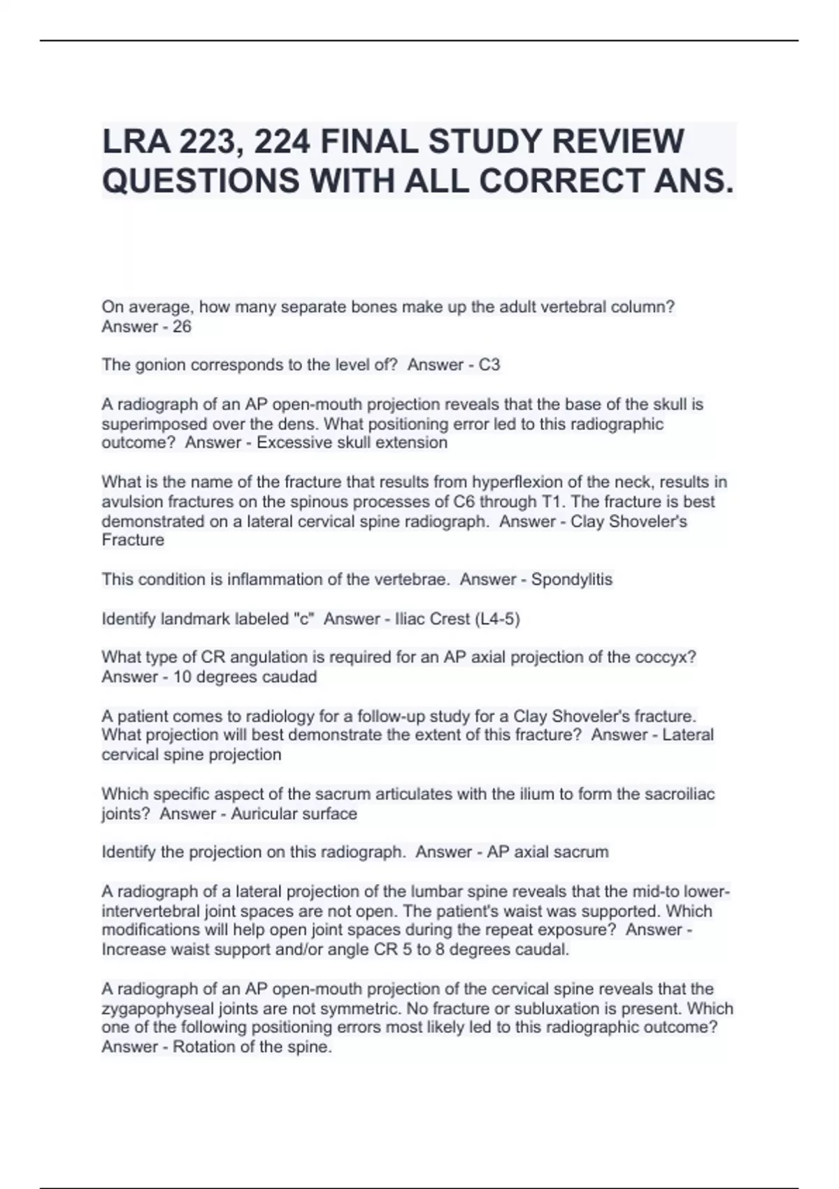 LRA 223, 224 FINAL STUDY REVIEW QUESTIONS WITH ALL CORRECT ANS.